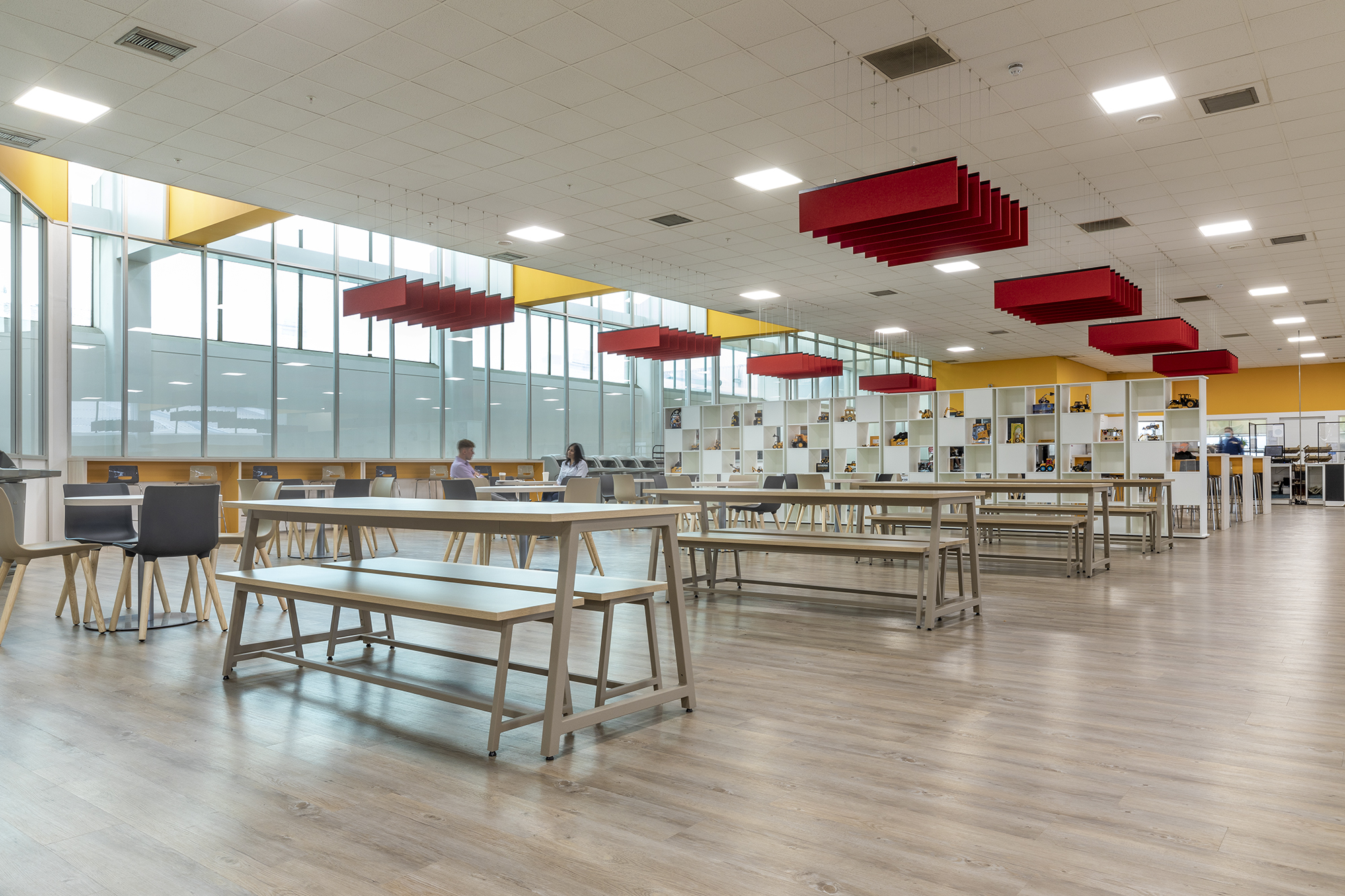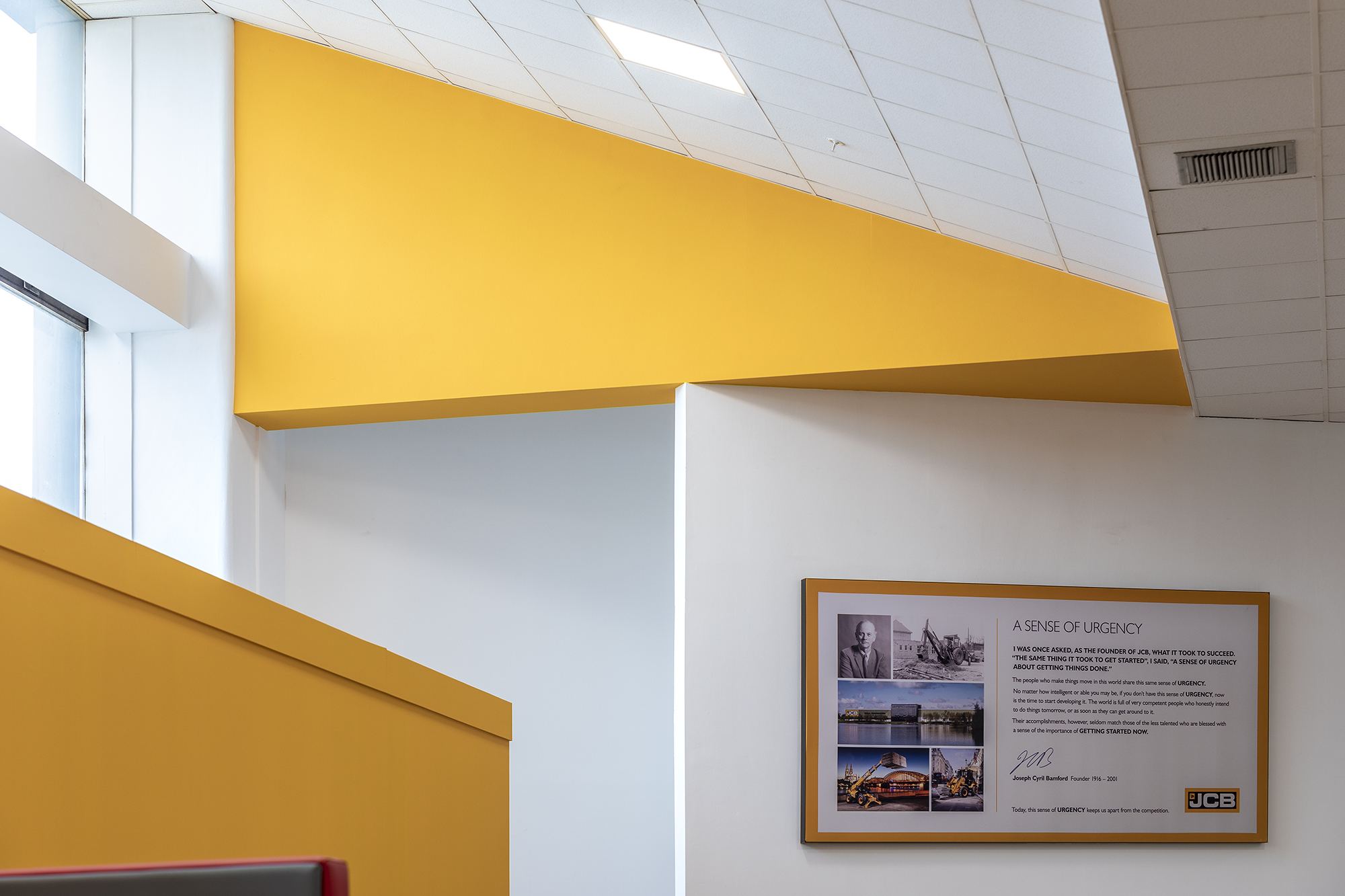 Anchorpoint Interiors are delighted to have been working again with one of the UK’s largest manufacturing companies. From humble beginnings in the 1940s, JCB, named after its founder, has become a worldwide business with 22 plants on four continents. Many of their customers will need to reinvent their businesses to meet new building standards and emissions legislation, and JCB has taken this approach to their own workplace, staff and wider site surroundings. Our most recent collaboration has been at HQ, upgrading the existing canteen into an attractive, inviting environment for staff, whilst providing a functional space for the catering team. We are pleased with the finished product, especially the JCB touches, keeping the brand alive.