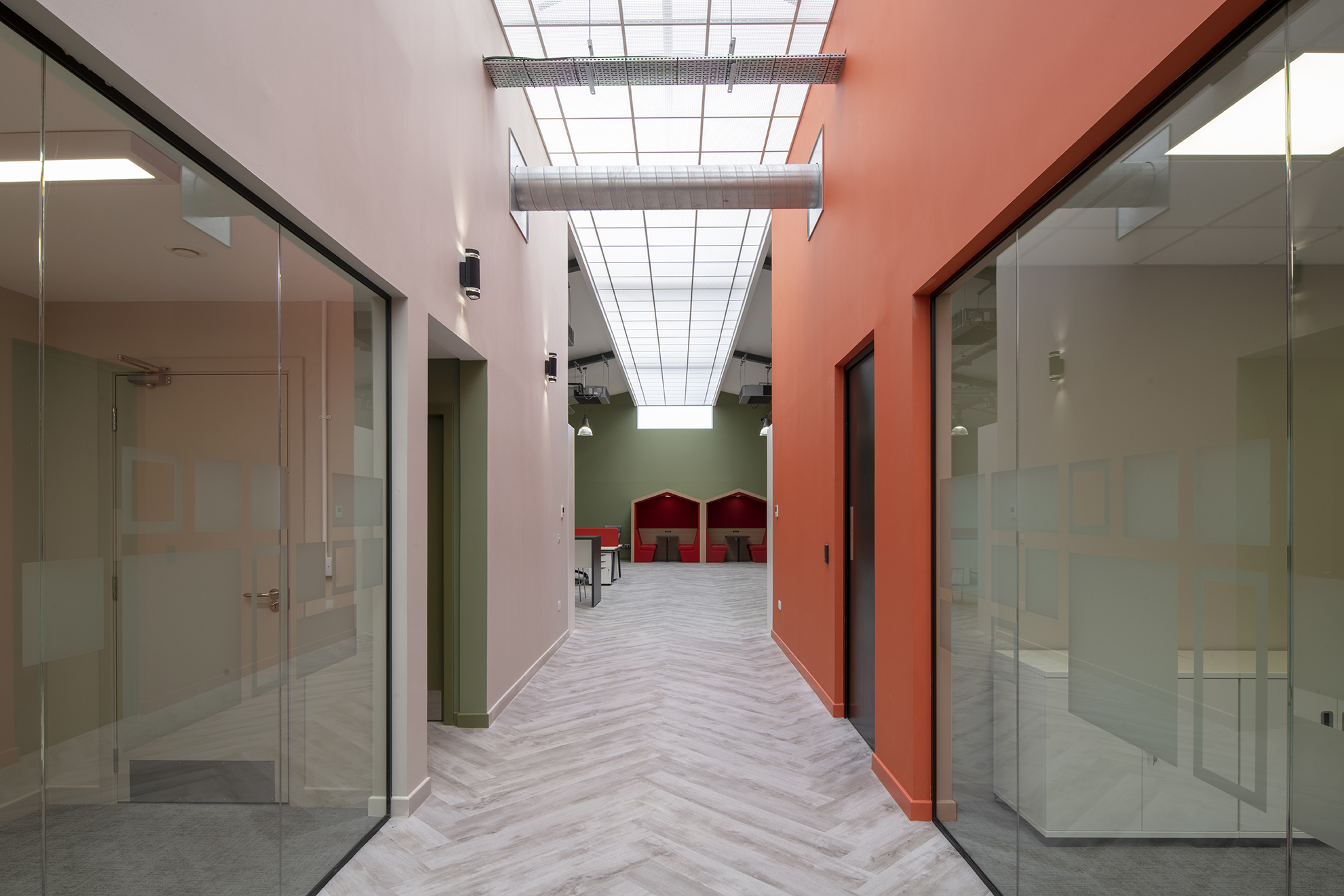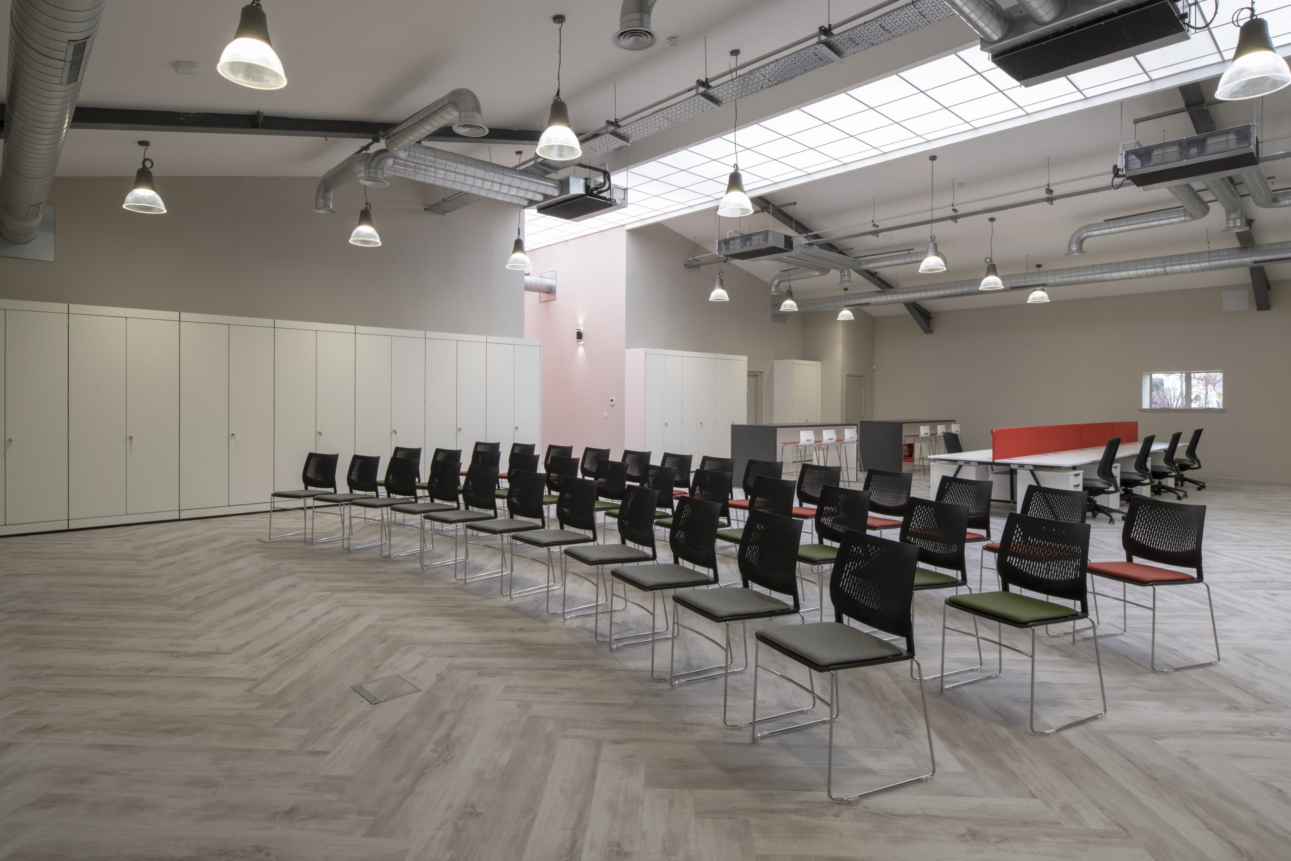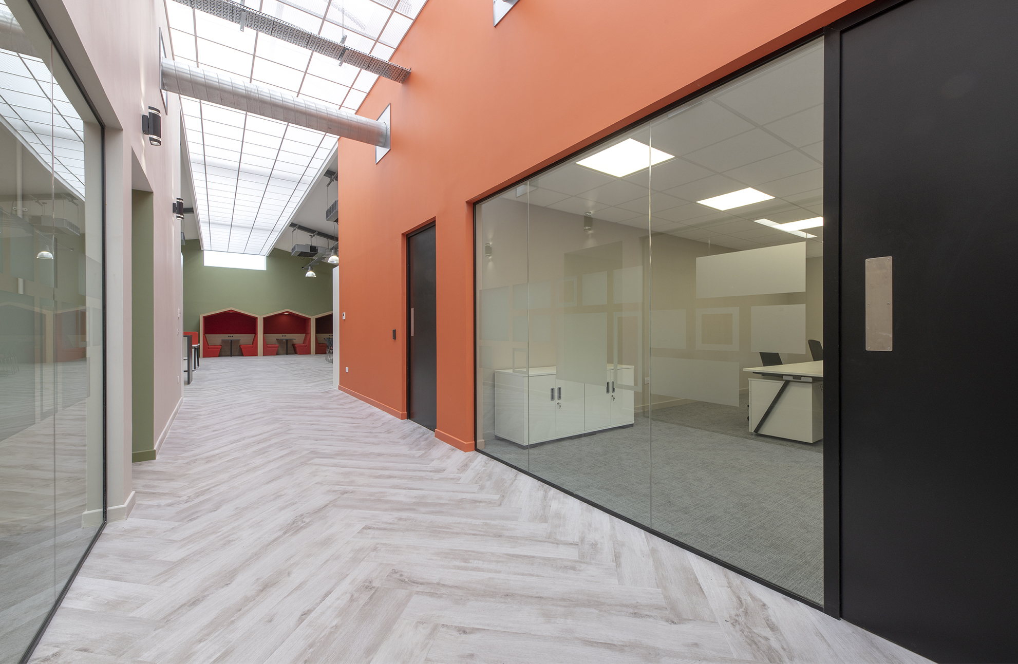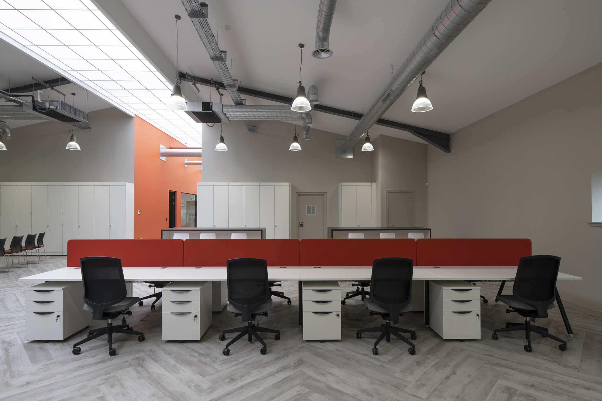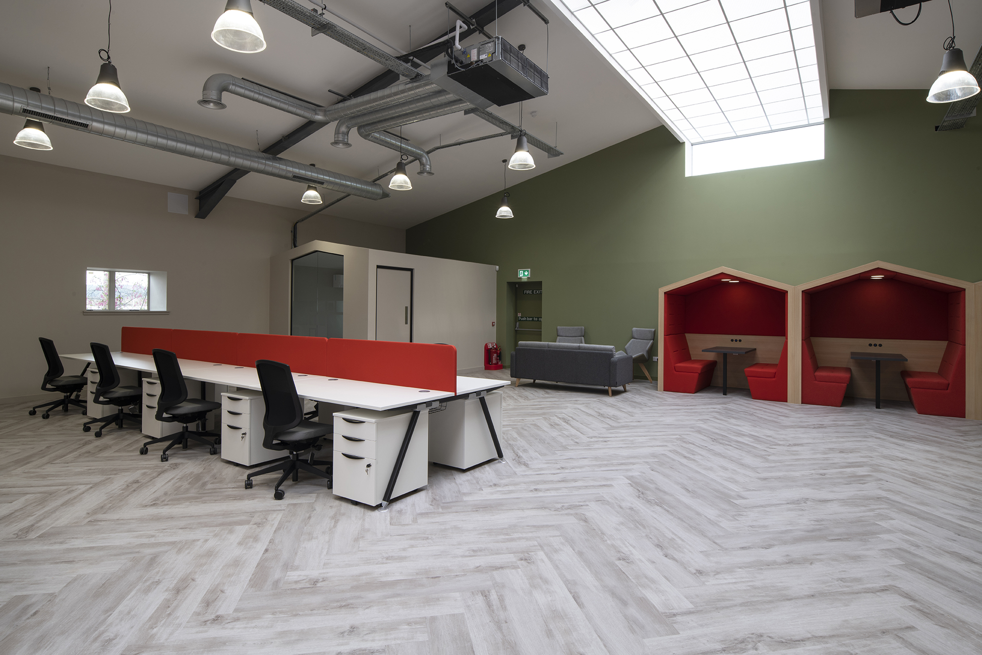 During a staged programme, Anchorpoint developed the initial concept design, and transformed the existing traditional building into a new office with new open plan office, townhall and collaboration space, individual managers’ offices and meeting facilities, with quiet working booths and a hot office. Specialist data and security requirements were incorporated in the design to meet the client’s tight specifications, and a new mechanical ventilation system was designed and installed to replace the obsolete equipment.